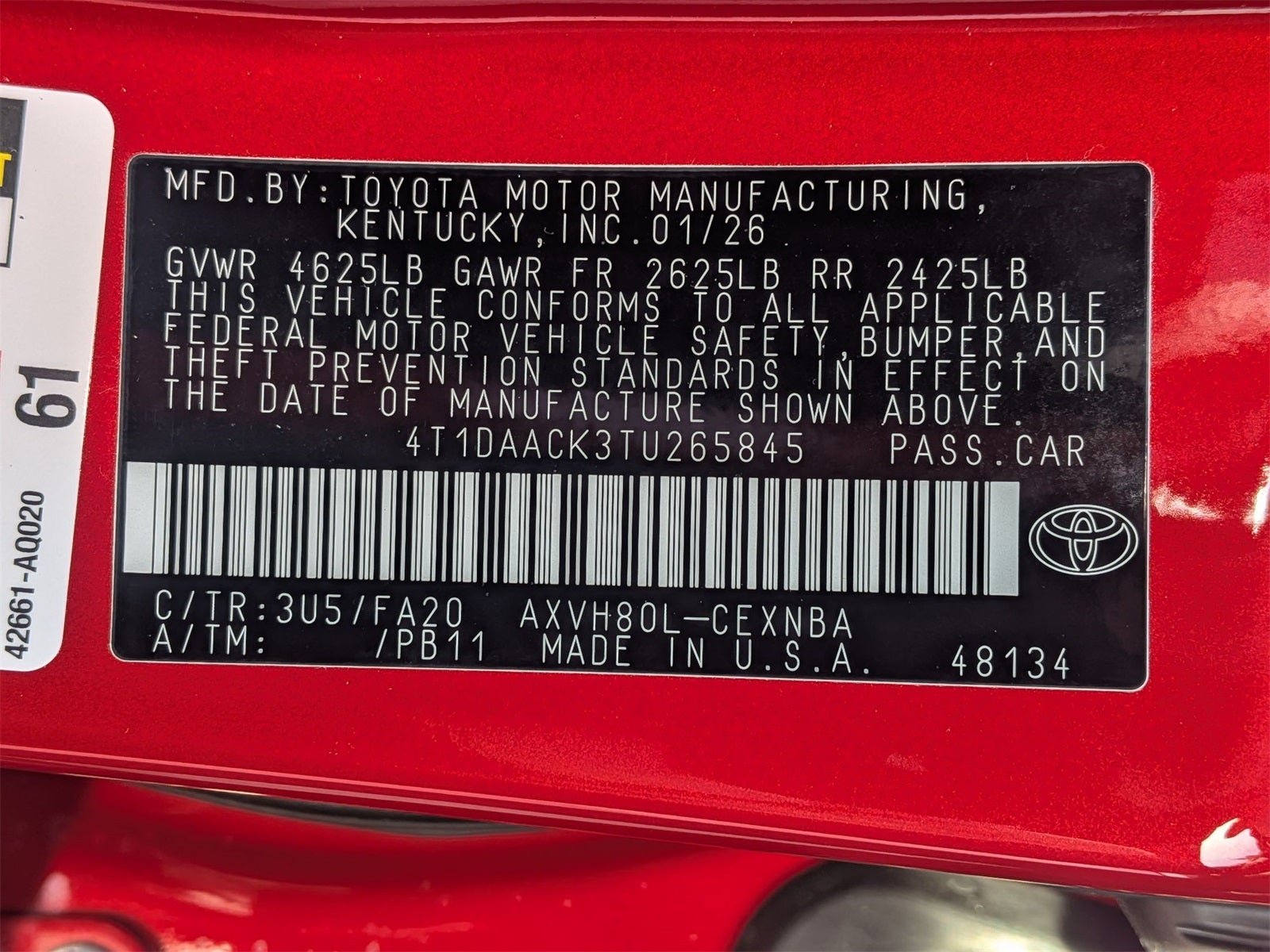 VIN: 4T1DAACK3TU265845