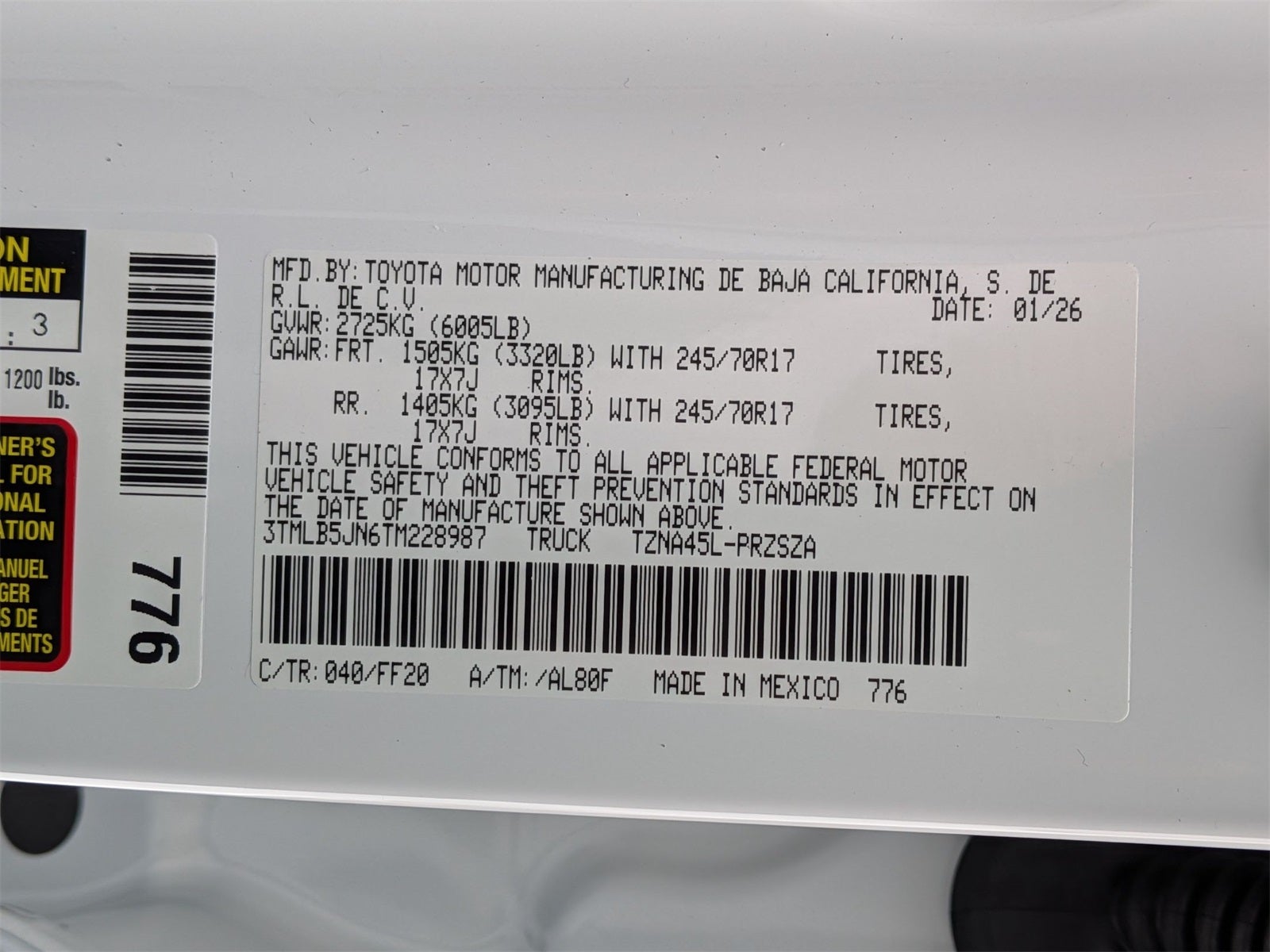 34. Projected EPA-estimated 20 city/26 highway/23 combined mpg rating for 2026 Tacoma SR 4x2 2.4L i-FORCE automatic; projected EPA-estimated 19 city/24 highway/21 combined mpg rating for 2026 Tacoma SR, SR5 4x4 2.4L i-FORCE automatic; projected EPA-estimated 18 city/23 highway/20 combined mpg rating for 2026 Tacoma SR 4x2, TRD Sport 4x2, TRD Off-Road 4x4 2.4L i-FORCE manual; projected EPA-estimated 21 city/26 highway/23 combined mpg rating for 2026 Tacoma SR5 4x2 2.4L i-FORCE automatic; projected EPA-estimated 20 city/24 highway/22 combined mpg rating for 2026 Tacoma TRD PreRunner, TRD Sport 4x2 2.4L i-FORCE automatic; projected EPA-estimated 19 city/23 highway/21 combined mpg rating for 2026 Tacoma TRD Sport, TRD Off-Road 4x4 2.4L i-FORCE automatic; projected EPA-estimated 19 city/23 highway/21 combined mpg rating for 2026 Tacoma TRD Off-Road 4x4 2.4L i-FORCE automatic; and projected EPA-estimated 20 city/23 highway/21 combined mpg rating for 2026 Tacoma Limited 4x4 2.4L i-FORCE automatic as determined by manufacturer. Projected EPA-estimated 22 city/24 highway/23 combined mpg rating for 2026 Tacoma TRD Sport, TRD Off-Road, Trailhunter, TRD Pro 4x4 2.4L i-FORCE MAX automatic as determined by manufacturer; projected EPA-estimated 23 city/24 highway/23 combined mpg rating for 2026 Tacoma Limited 4x4 2.4L i-FORCE MAX automatic as determined by manufacturer. EPA estimates not available at time of posting. Use for comparison purposes only. Your mileage will vary for many reasons, including your vehicle’s condition and how/where you drive. See www.fueleconomy.gov.