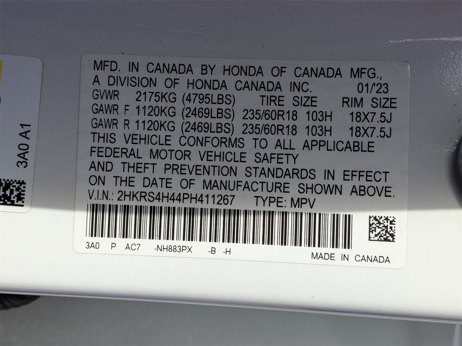 - Tires: 235/60R18 103H